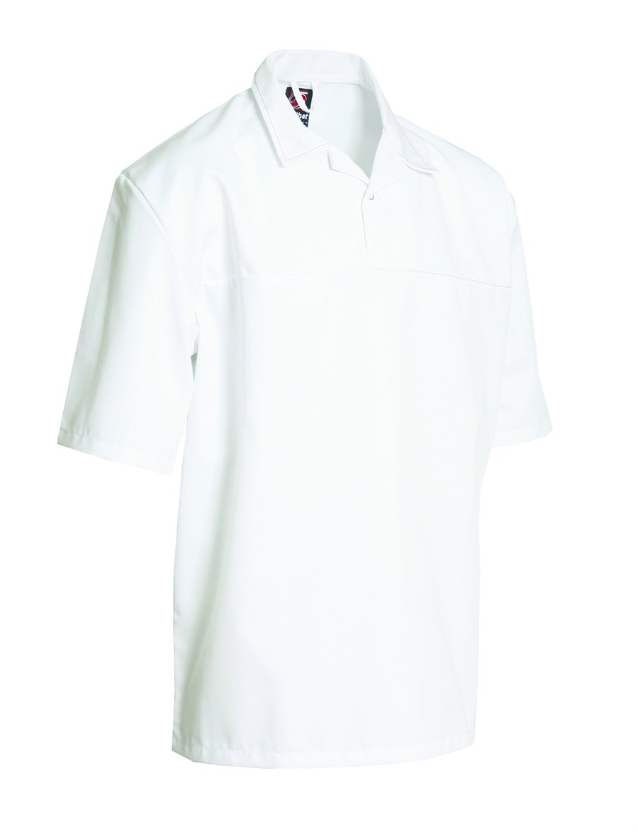Godkjent næringsmiddeltøy i 65% polyester, 35% bomull, 245g/m2.Plaggene bærer symbolet trygge tekstiler- Øko- Tex.